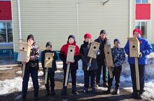 Ученики Каратунской СОШ, изготовили скворечники и совместно с лесничим Буинского лесхоза Листратова Ю. И. повесили их на деревья