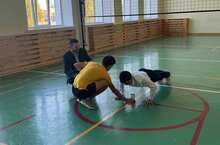 И сегодня нашим школьным ученическим советом были проведены соревнования по отжиманиям среди юношей под девизом «Спорт норма жизни»