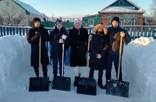 Өлкәннәребезгә ярдәм итү бурычын беренче куеп, ял иртәсендә егетләребез hәм кызларыбыз күрше әби-бабаларынын ишек алларын кардан чистартып кайттылар.