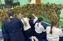 Учителя и ученики нашей школы начали плести маскировочную сетку. Техника ее плетения несложная, но трудоемкая.