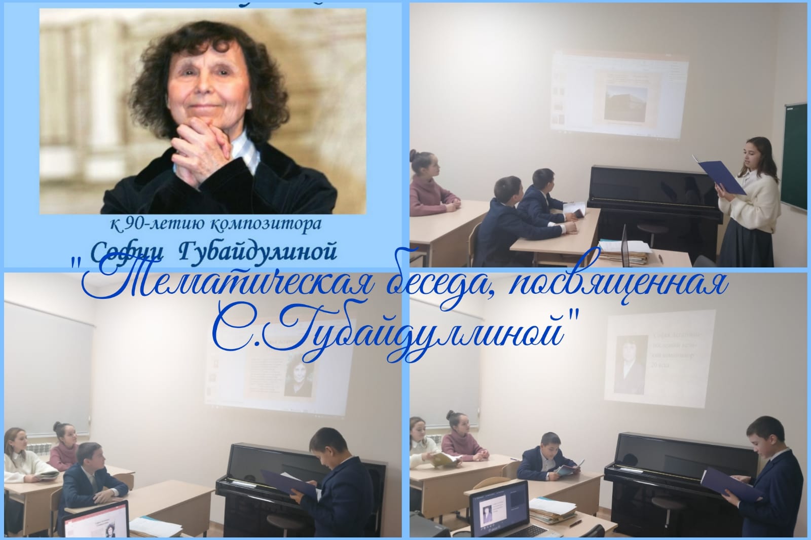 В 4 - 6 классах проводилась "Тематическая беседа, посвященная 90- летию со дня рождения С.Губайдуллиной".