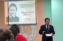 В актовом зале школы состоялась встреча с научными сотрудниками национальной художественной галереи «Хазинэ» РТ г. Казани. К нам в гости приехали старший научный сотрудник Фасеев Дамир Сабирович и старший научный сотрудник и кандидат филологических наук Мухаметшин Зуфар Гумерович. Мероприятие было посвящено 135-летию со дня рождения великого татарского поэта Габдуллы Тукая- «Образ Габдуллы Тукая в творчестве художников и скульпторов Татарстана».