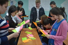 Укучылар "Мин татарча сөйләшәм" акциясендә катнаштылар. Апас урамнарында кешеләр белән татар телендә аралаштылар. Татар теленең әһәмиятенә басым ясадылар.