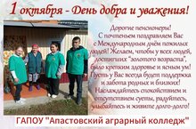 Желаем им крепкого здоровья, благополучия, долголетия и неугасающего интереса к жизни!Өлкәннәр ункөнлеге кысаларында Апас аграр көллияте олы яшьтәге хөрмәтле хезмәттәшләрен хөрмәтли.Аларга нык сәламәтлек, иминлек, озын гомер һәм тормышка сүнмәс кызыксыну телибез! -