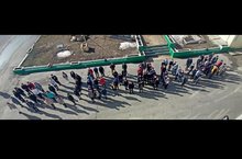 После викторины студенты аграрного колледжа провели флеш- моб ко Дню космонавтики и выстроились в слово "Поехали! ". С высоты птичьего полета можно было разглядеть всю картину происходящего.