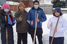 Молодые ребята помогли очистить снег во дворе и перед двором.