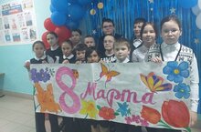 Обучающиеся объединения "Мир красок" на базе МБОУ "Азбабинская СОШ. Выпуск плаката к 8 Марта.
