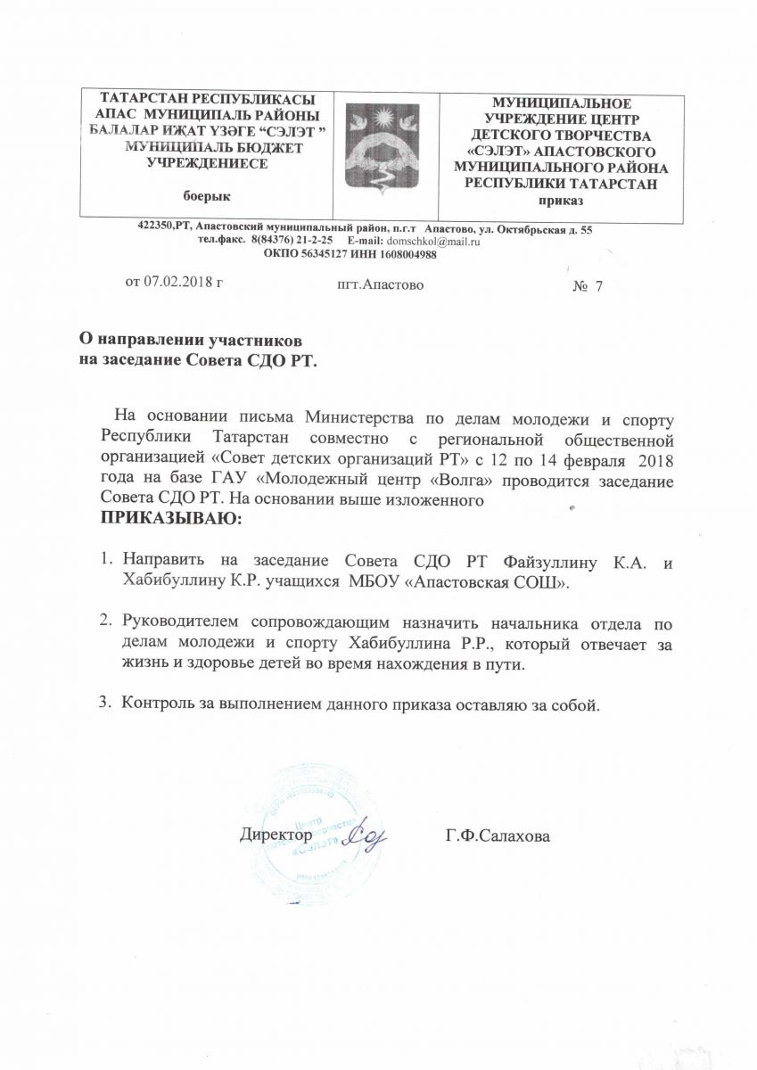 | Адрес: | 422350, РТ, Апастовский район, п.г.т. Апастово, ул. Октябрьская, дом 55 |