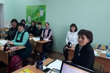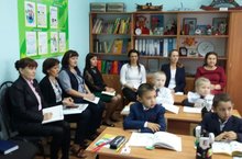 Борнаш урта мәктәбендә беренче сыйныфта дәрес карау. Укытучылар, тәрбиячеләр фикер, тәҗрибә алыша.
