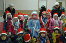 Мәктәпкә әзерлөк төркеме балалары районның Яңа ел чыршысын ачу бәйрәмендә, бию белэн чыгыш ясадылар .