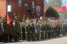 Наш коллектив участвовал в праздничном митинге. А воспитанники приняли участие в торжественном марше на параде.