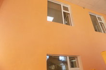 Обновление детского сада продолжается. С утра до позднего вечера у нас трудятся 31 рабочих. В помещении уже есть новое отопление, поставлены новые светодиодные светильники. Сейчас рабочие занимаются заливкой полов, штукатуркой стен, облицовкой.