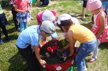Лето-пора отдыха! Наши воспитанники совмещают приятное с полезным делом. Загорают, играют и заботятся о своих клумбах. Воспитатели ведут систематическую работу по физическому, эстетическому, трудовому и экологическому воспитанию детей.