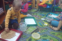 Сортировка крупы не только развивает пальчики, но и развивает математическое мышление. Но если честно, в отличие от Золушки, многим детям очень скучно отделять фасоль от гороха и раскладывать их по разным коробочкам.