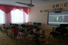 Сегодня дети ясельной и 2 младшей группы смотрели мультфильмы. Для показа мультфильмов был использован мультимедийный проектор. Детям очень понравилось.