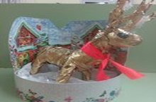 В нашем детском саду организована выставка новогодних поделок. Дети подготовительной группы очень стараются, чтобы их поделки порадовали Деда Мороза. Вот какой олень мчится к нам на праздник. Его изготовила Ибрагимова Адиля, воспитанница подготовительной группы.