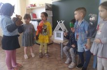 Балалар татар теле дэресендэ "Теремкэй" рус халык экиятен тыннадылар. Экияттэге жэнлеклэр булып уйнап та алдылар, экият куйдылар.