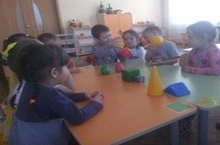 Математическое занятие "Отгадай, что в мешочке".Сегодня детишки на занятии по математике собрались вместе и сели вкруг, чтобы посмотреть, а что находится в "чудесном мешочке". Ребята не доставая, определяли на ощупь какие предметы находятся в мешочке. Малыши узнавали предметы, и находя сходство с геометрическими фигурами располагали их на столе. -