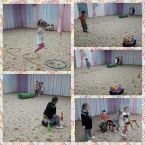 На занятии по физической культуре дети старшей группы вспомнили упражнение "пролезание в обруч", учились прыгать через скакалку, а затем поиграли в игру "Рыбаки и рыбки" со скакалкой. / Физик культура шөгылендә өлкәннәр төркеменә йөрүче балалар сикерү күнекмәләрен ныгыттылар."Балыкчы һәм балыклар" уенын уйнадылар.