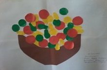 Аппликация на тему: "Фрукты в корзинке" коллективная работа. Цели: Продолжать учить детей действовать ножницами, салфеткой, клеем. Закреплять приёмы аккуратного наклеивания. Развивать чувство цвета.