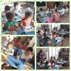 Дети старшей группы на занятии по аппликации собрали большое количество грибов на зелёной полянке. Каждый из детей нашёл здесь целую семью грибов - маму, папу, бабушку, дедушку и самого себя. Это занятие оказалось очень интересным.