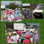 Наблюдение за машиной "Газель". Дети разновозрастной группы познакомились с внешним видом машины: кузов, кабина, колёса. Они узнали, что данная машина перевозит грузы, доставляет продукты в наш детский сад.