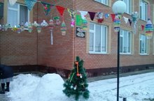 Коллектив нашего детского сада украшает территорию к Новому году.