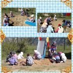Дети разновозрастной группы с удовольствием играют в песочнице. Здесь можно увидеть куличики разной формы, замки и другие постройки.