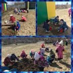 Свежий воздух, тёплые деньки и игры в песочнице - дети разновозрастной группы на прогулке.