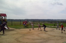 Перед началом игры дети делятся на две команды: игроков и вышибал. Игроки встают в центре площадки, а вышибалы, поделившись на две группы, - с двух сторон от игроков. Вышибалы, перекидываясь мячом, стараются попасть им в игроков - вышибить. Игрок, в которого попал мяч, выбывает из игры. Когда все игроки покинут площадку, команды меняются ролями. Если играют втроем, то тот, кто вышиб игрока, занимает его место на площадке.