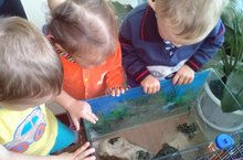 Дети ясельной группы вместе с воспитателем, проведя опыт с водой, познакомились со свойствами воды. Малыши, добавляя в стакан с прозрачной водой разноцветную гуашь или краску, увидели, что вода изменяет цвет. То есть она становится голубой, красной …. разноцветной. Вот так фокус!