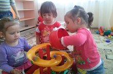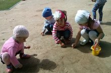 Мы в песочнице играем,Строим домик из песка,Увлеклись, не замечаем,Что носки полны песка.Принесли воды в ведёрке,Чтобы не сломался дом,Красовался на пригорке,Мы его водой польём. -