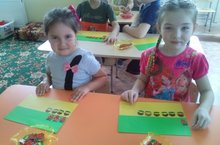 На занятии по развитию математических представлений упражнять детей в определении количественного состава числа 7. Ралина с Камилой с легкостью справились с заданием