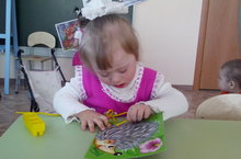 Детям предлагается “незаконченная” картинка (изображение ежика, белочки, елки, вазы с букетом, домика), к которой нужно пришнуровать недостающие детали: грибы, фрукты и орехи, новогодние игрушки, цветы, окошки и т. п.
