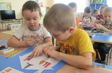 Дети старшей группы, рассмотрев иллюстрации трамвая и обследовав конструкцию игрушечного трамвая, учились конструировать трамвай по образцу, а также видоизменять конструкцию в длину и высоту, обсуждали верные и неверные решения. Сконструировав трамваи, ребята рассаживали в них пассажиров и «катали» их.