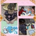 Игры в собирание пазлов и мягкой цепочки развивают логику, фантазию и мелкую моторику рук. Дети разновозрастной группы очень любят эти игры. / Пазллар һәм чылбырлар җыю фикер йөртүне һәм вак моториканы үстерә. Төрле яшьтәгеләр төркеме балалары бу уеннарны бик яратып уйныйлар.