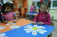 Кече төркем балалары "Төрле төсле бармаклар" дидактик уенын яратып уйныйлар. Уен барышында бармаклар атамаларын кабатлыйлар, төсләрне өйрәнәләр.