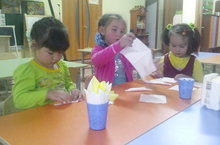 На занятии по аппликации знакомили детей с техникой плетения. Детей старшего возраста учили создавать на основе этого способа разноцветные коврики, развивали чувство цвета при выборе бумаги. Дети с удовольствием выполняли задание и любовались своей работой.