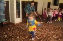 Кечкенәләр төркемендэ физкультура шөгыле булды. Балалар 30 см ераклыкта куелган шнурлар арасыннан йөгереп уздылар, кире килгәндә вертикаль торган кыршау аркылы чыктылар. Кечкенә булуларына карамастан, алар шнурларга басмыйча йөгерделәр, кыршау аркылы да шома уздылар.