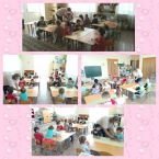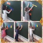 На занятии по математике дети разновозрастной группы познакомились с понятиями "выше - ниже", "шире - уже".