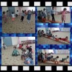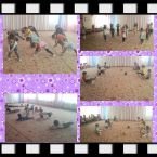 На занятии по физической культуре дети разновозрастной группы сделали упражнения. А также учились перекатывать мяч друг другу.