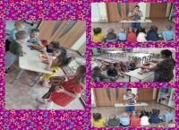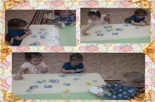 Дети ясельной группы с удовольствием играют в дидактические игры. Собирать картинки - половинки для них очень интересно. / Иң кечкенәләр төркеменә йөрүче балалар бик яратып дидактик уеннар уйныйлар. Картиналарның өлешләрен табып, бөтен итеп җыю- алар өчен кызык шөгыль.