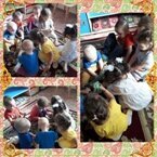 Сегодня к детям ясельной группы приходили гости, куклы Камила и Рамиль. Они показали детишкам свои головные уборы - яулык (платок) и тюбәтәй (тюбетейка). А также познакомили детишек с цветом головных уборов ак (белый) и яшел (зелёный).