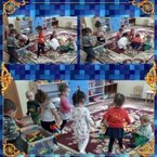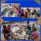 Дети ясельной группы с интересом играют с конструктором, складывая из него башни и небольшие домики. / Иң кечкенәләр төркеменә йөрүче балалар конструктор белән бик яратып уйныйлар, аңардан төрле корылмалар ясыйлар.