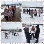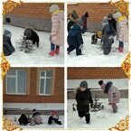 Дети подготовительной группы укрывали снегом стволы елей на участке для того, чтобы они не замёрзли в зимнее время года. / Кыш көне өшемәсеннәр өчен балалар чыршы төпләрен кар белән томаладылар.