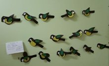 На занятии по аппликации на тему "Зимующие прицы" дети старшей группы сделали синичек.