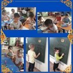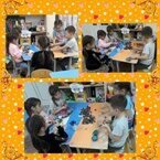 Дети подготовительной группы оказывают шефскую помощь старшей группе. Они поточили цветные карандаши.
