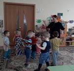 Мало подвижная игра "Ап - ак куян". Дети с удовольствием выполняли ритмические движения, а в конце игры их догоняла Лисичка, которая пыталась скушать деток.