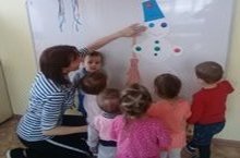 Сегодня дети ясельной группы на занятии конструировали снеговика.