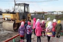 Наблюдение за специальным транспортом (автокран, камаз)./ Балалар махсус транспорт төрләрен күзәтәләр.